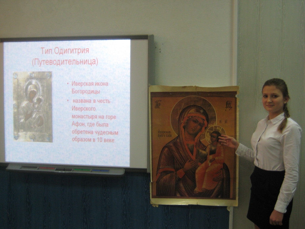 16 декабря 2015 г. в Доме детского творчества г. Батайска прошел семинар для обучающихся по теме «Икона как явление отечественной культуры». На семинаре выступила учащаяся воскресной школы Вознесенского храма г. Батайска Мария Лопатина с докладом «Как в акафисте Иверской иконе Богородицы отразилась история обретения, наименования и почитания иконы». Мария показала связь особенностей иконографии иконы с иконоборческим периодом. Далее было отмечено, что по имени афонского монастыря икона Богородицы стала называться «Иверской», а по месту её пребывания над монастырскими вратами – «Вратарницей». Было показано, что в акафисте кондака 7 и икоса 7отражена чудесная помощь Богородицы, явленная через икону: избавление монастыря от нашествия врагов, чудесное пополнение запасов продуктов, многочисленные случаи исцеления больных. В конце выступления Мария сделала вывод, что в акафисте отражена связь Иверской иконы Богородицы с историческими событиями, история ее почитания на Афоне и в России.