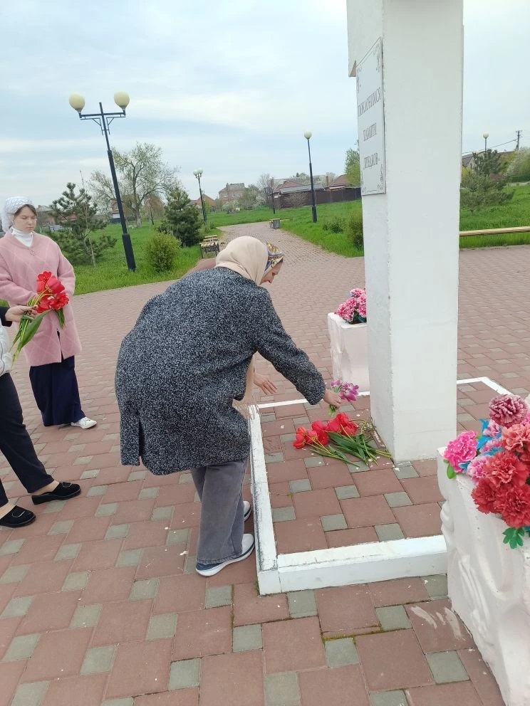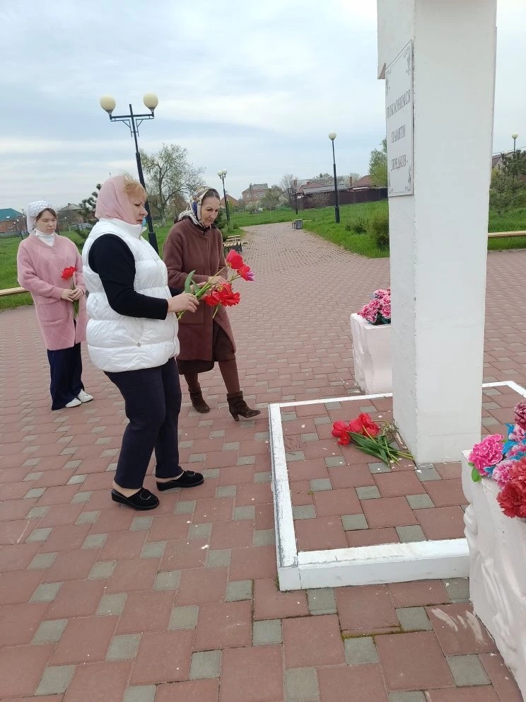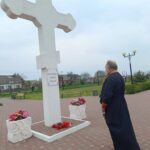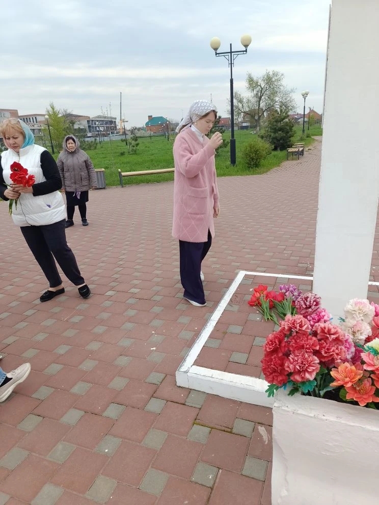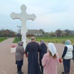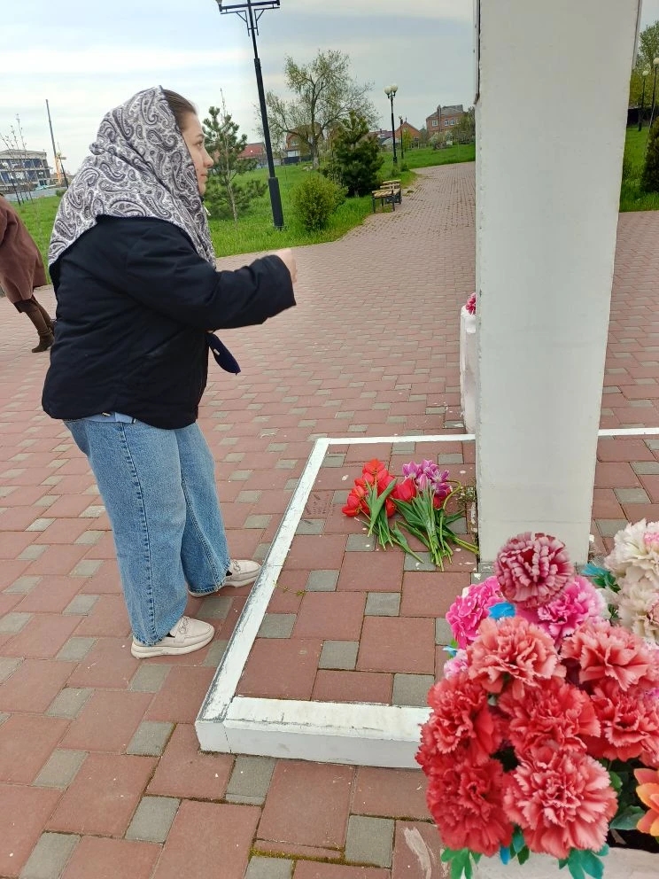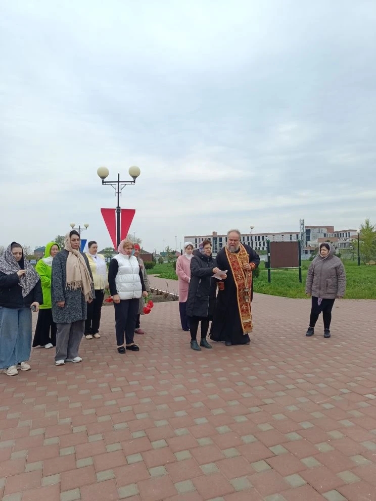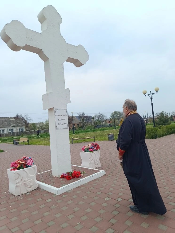 После Божественной литургии, наполненной светлой пасхальной радостью, батюшка вместе с прихожанами отправился к месту, где православные христиане традиционно возносят молитвы о воинах, «живот свой положивших за веру и Отечество». У подножия креста была отслужена панихида.
